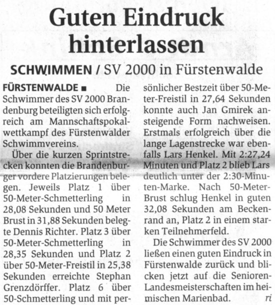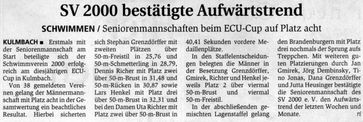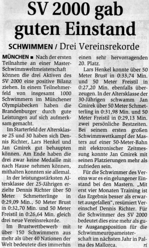 München.Mit Platz 9 über 100 Meter Brust durch Lars Henkel sowie