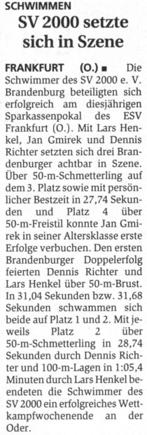 über 50 und 200 Yard Rücken und Platz 3 über die 100 Yard. Uwe Kussatz