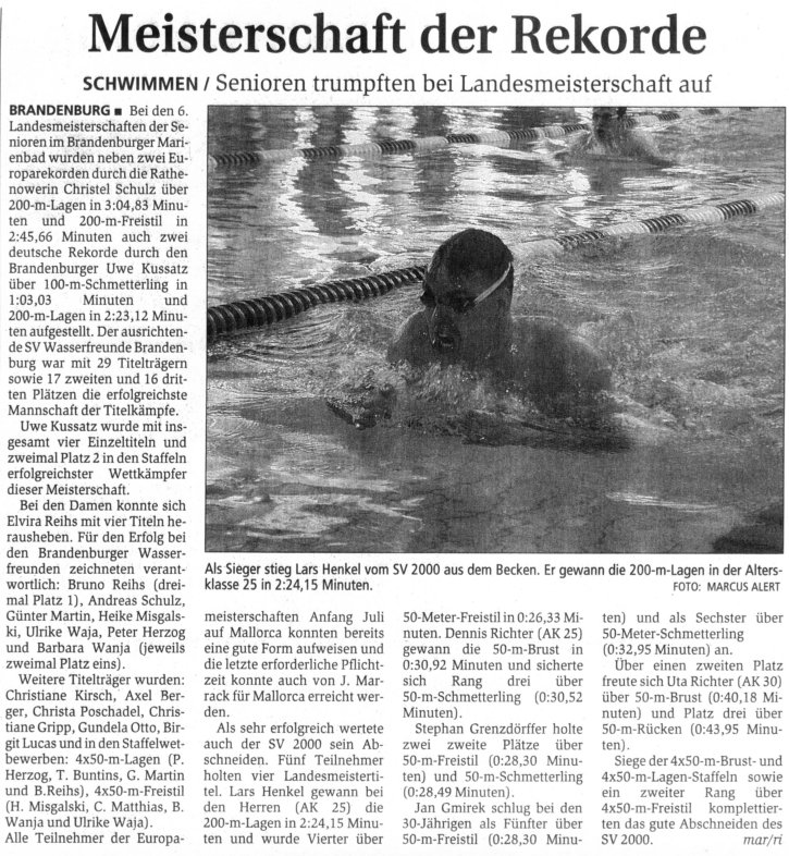 200-Meter-Lagen in 2:31,06 Min. schrammte Uwe Kussatz nur 4/10 sec am