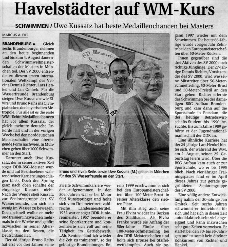 Rekordhalter Uwe Kussatz werden für den SV Wasserfreunde Brandenburg